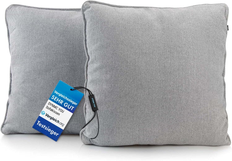 - Material-ZusammensetzungDYNMC you Sofakissen mit Füllung und Bezug - 2er Set 40x40cm mit Viel Füllung - VERGLEICHSSIEGER SEHR GUT - Rückenkissen mit Oeko TEX Baumwoll-Bezug - Bequeme Dekokissen - Couchkissen Grau