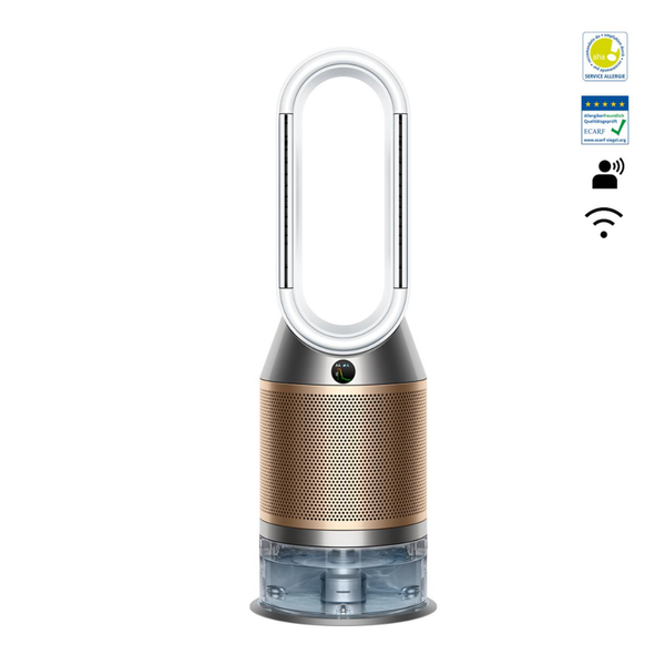 Dyson PH04 Purifier Humidify+Cool Formaldehyde 3in1 weiss/gold, Ventilator & Luftreiniger & Luftbefeuchter leise, Schlafzimmer, Allergiker, Raucherzimmer, Luftfilter 99,5%, inkl JUNG Pflegetücher