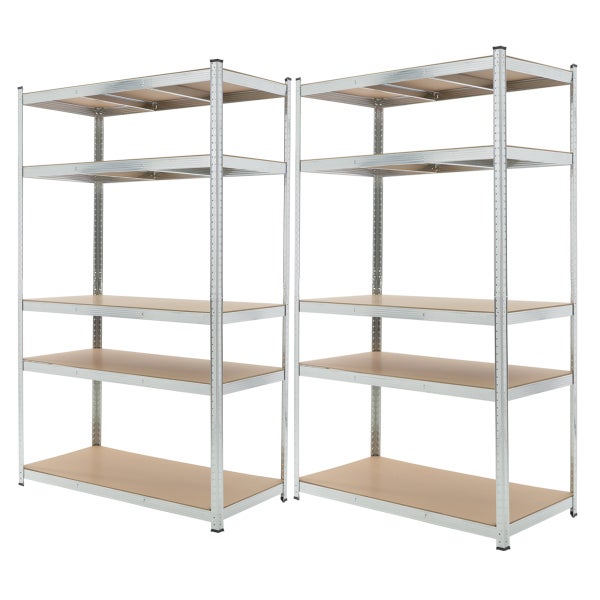 ECD Germany 2er Set Werkstattregal Schwerlastregal 200x120x60cm Metall verzinkt mit 5 Böden aus MDF Holz, belastbar bis 875kg, Lagerregal Steckregal Kellerregal Garagenregal Metallregal Regal Werkbank