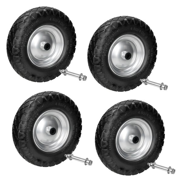 ECD Germany 4er Set Schubkarrenrad mit Blockprofil aus pannensicherem PU Vollgummi, Ersatzrad Gummirad mit Achse, 4.80/4.00-8, Durchmesser 390 mm, Schwarz, 200kg, Reifen mit Stahlfelge für Schubkarre