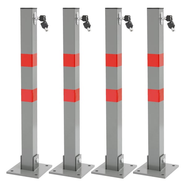 ECD Germany 4x Parkplatzsperre klappbar, eckig, 70cm, Parkpfosten aus Stahl mit roten Warnstreifen, Schloss und 3 Schlüssel, Absperrpfosten Sperrpfosten Parkplatz-Barriere Park Pfosten Poller Standfuß