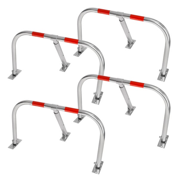 ECD Germany 4x Parkplatzsperre Parkplatzbügel 84 x 48 cm, klappbar, umlegbar, aus verzinktem Metallrohr 32 mm, Parkbügel mit 3 Beinen und 2 rote Warnstreifen, Sperrbügel Parkplatzblockierer Parksperre
