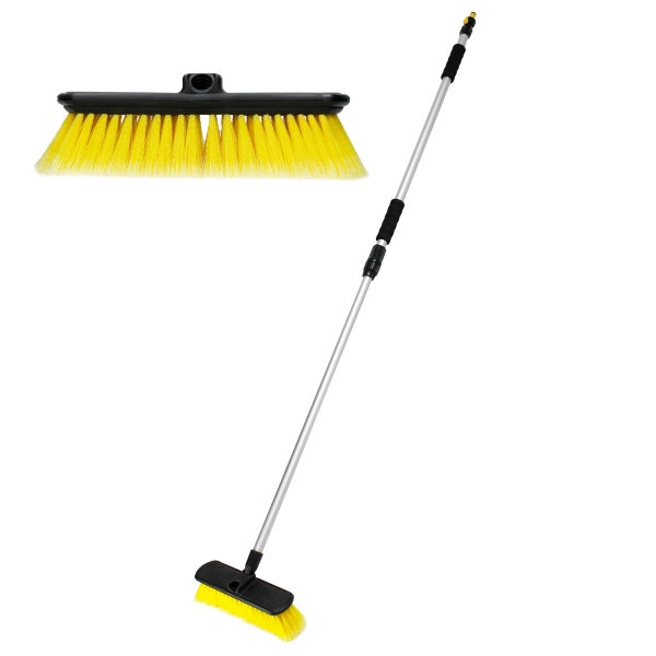So sieht professionelle Autowäsche aus. Mit dieser Autowaschbüste mit Teleskopstange und Wasserzufuhr haben Sie ruckzuck Ihr Auto gesäbert. Ob Caravan, PKW, Lieferwagen oder LKW: Durch ihr leichtes Gewicht von nicht einmal einem Kilogramm sowie die Griffe aus rutschfestem Moosgummi wird das Autowaschen zum Kinderspiel. Die ausziehbare Teleskopstange ermöglicht, dass Sie an jede Ecke Ihres Wagens problemlos heran kommen, egal wie groß das Auto ist. Und die weichen Borsten der Waschbüste sorgen dafür, dass der Lack nicht zerkratzt wird.