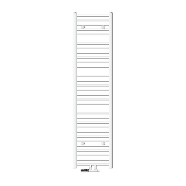 ECD Germany Badheizkörper Mittelanschluss 400 x 1800 mm Weiß gebogen mit Thermostat und Anschlussgarnitur Eck Wand Weiß - Heizkörper Heizung Handtuchwärmer Handtuchtrockner Handtuchheizkörper