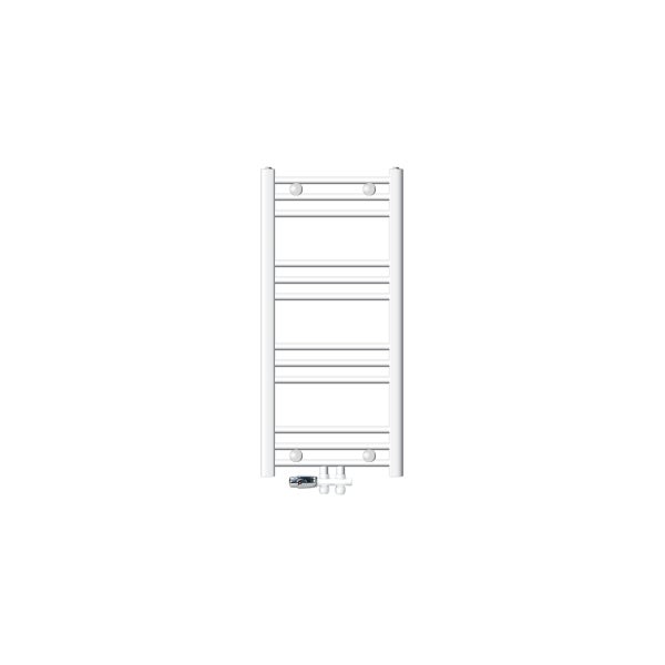 ECD Germany Badheizkörper Mittelanschluss 400 x 800 mm Weiß gerade mit Anschlussgarnitur inkl. Thermostat Durchgang Boden Weiß Heizkörper Heizung Handtuchwärmer Handtuchtrockner Handtuchheizkörper