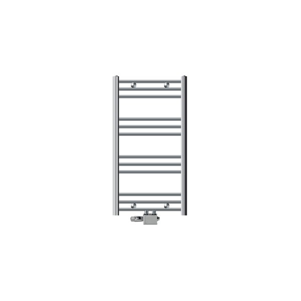 ECD Germany Badheizkörper Mittelanschluss 500 x 800 mm Chrom gebogen mit Anschlussgarnitur inkl. Thermostat Universal Eck- und Durchgangsform Chrom Heizkörper Heizung Handtuchwärmer Handtuchtrockner