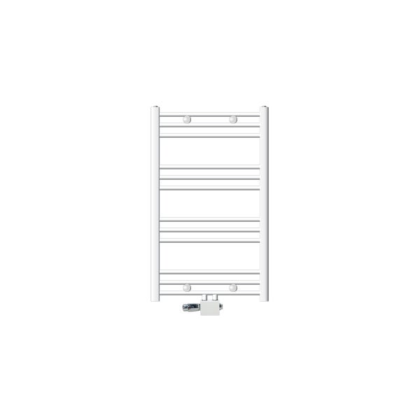 ECD Germany Badheizkörper Mittelanschluss 600 x 800 mm Weiß gerade mit Anschlussgarnitur inkl. Thermostat Universal Eck- und Durchgangsform Weiß Heizkörper Heizung Handtuchwärmer Handtuchtrockner