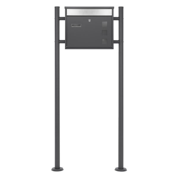 ECD Germany Design Briefkasten mit Pfosten, Standbriefkasten mit Namensschild, Briefkastenanlage, Briefkastenständer Anthrazit 120 cm Edelstahl, Postkasten Anthrazit-Silber Edelstahl pulverbeschichtet