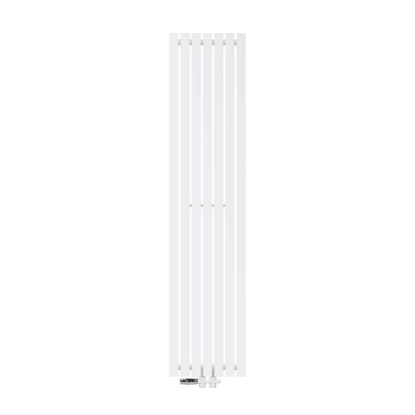 ECD Germany Design Paneelheizkörper Stella Mittelanschluss 370 x 1600 mm Weiß mit Anschlussgarnitur inkl. Thermostat Durchgang Boden, Flach Einlagig Vertikal, Heizkörper Badheizkörper Bad Heizung