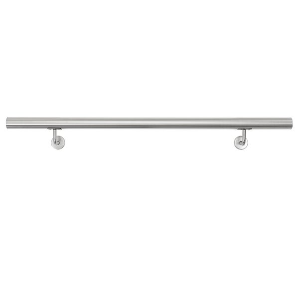 ECD Germany Edelstahl V2A Handlauf 100cm, rund Ø42mm, rostfrei, gebürstet, Innen/Außen, inkl. Wandhalterung, Edelstahlhandlauf Wandhandlauf Treppengeländer Geländer Treppe Wandhalter Haltegriff Stange