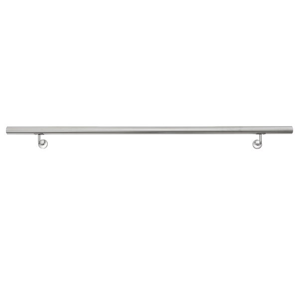 ECD Germany Edelstahl V2A Handlauf 160cm, rund Ø42mm, rostfrei, gebürstet, Innen/Außen, inkl. Wandhalterung, Edelstahlhandlauf Wandhandlauf Treppengeländer Geländer Treppe Wandhalter Haltegriff Stange