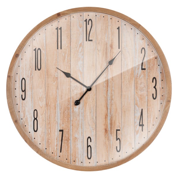 ECD Germany Große Wanduhr Ø 76cm rund mit Arabische Ziffern, Dekorative Uhr aus MDF-Holz und Glas, Fichtenoptik, Design Uhr im Vintage-Stil, Leisem Uhrwerk, geräuschlos, Analoge Wanduhr für Wohnzimmer