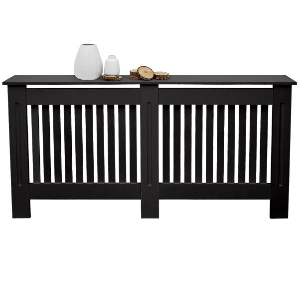 ECD Germany Heizkörperverkleidung Landhausstil 152x19x82 cm Schwarz aus MDF lackiert für Schlafzimmer Wohnzimmer Heizungsverkleidung Heizkörperabdeckung Heizungsabdeckung Heizung Heizkörper Abdeckung