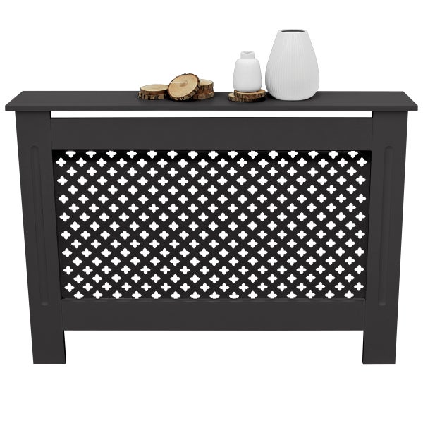 ECD Germany Heizkörperverkleidung mit Wabenmuster 112x19x82 cm Schwarz MDF lackiert für Schlafzimmer Wohnzimmer Heizungsverkleidung Heizkörperabdeckung Heizungsabdeckung Heizung Heizkörper Abdeckung