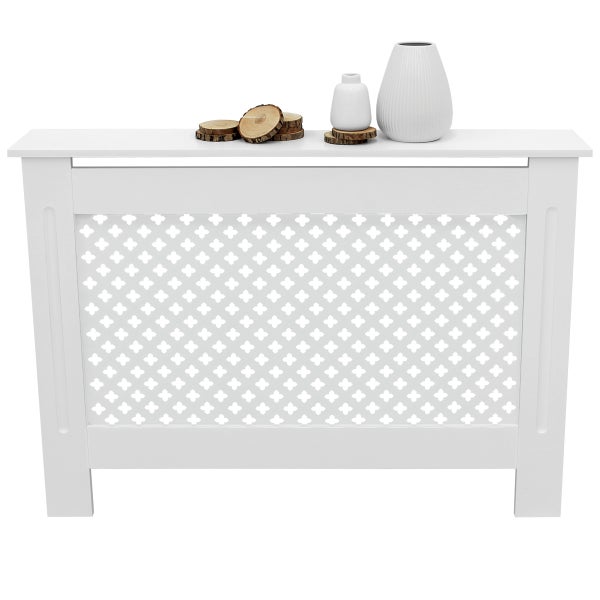 ECD Germany Heizkörperverkleidung mit Wabenmuster 112x19x82 cm Weiß aus MDF lackiert für Schlafzimmer Wohnzimmer Heizungsverkleidung Heizkörperabdeckung Heizungsabdeckung Heizung Heizkörper Abdeckung