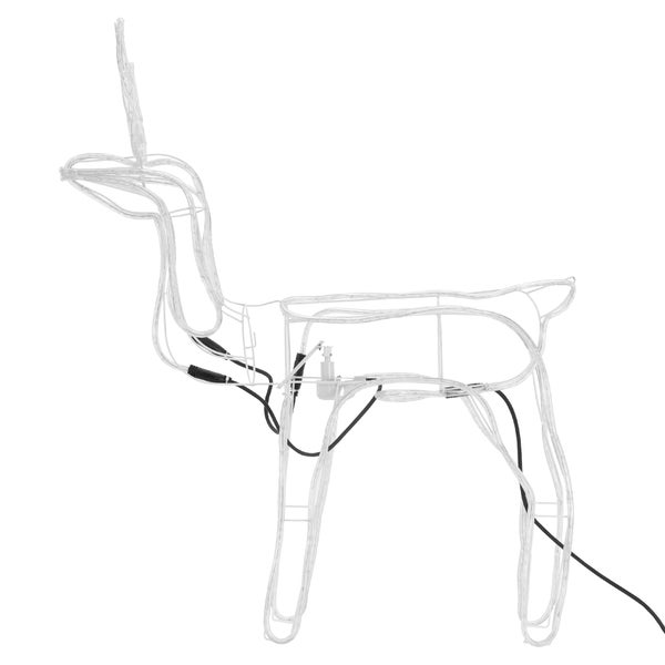 Diese Dekoration in Rentierform besteht aus PVC, was sie während der Weihnachtszeit wetterbeständig macht. Ausgestattet mit langlebigen und widerstandsfähigen LEDs. Die Beleuchtung verfügt über ein 1,5 m langes Kabel mit einem IP 44-Adapter und kann darüber hinaus sowohl im Innen- als auch im Außenbereich verwendet werden.