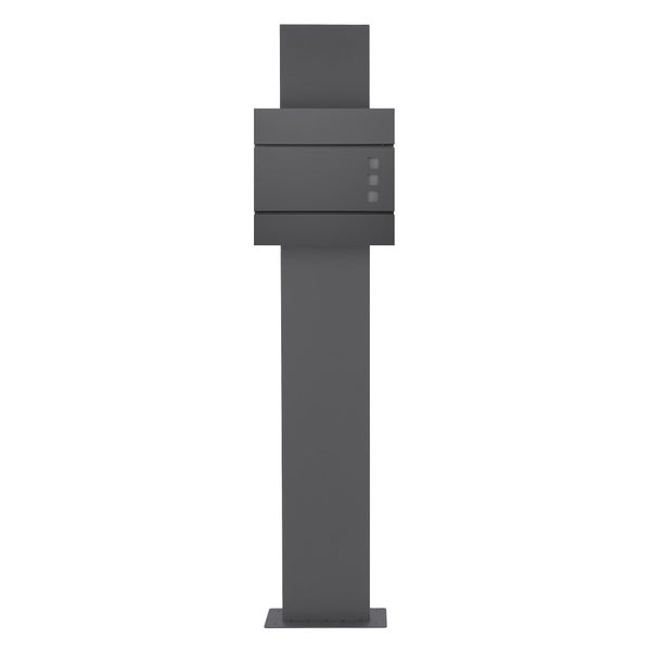 ECD Germany Standbriefkasten mit Zeitungsfach, Briefkasten Standfuß Freistehend, Briefkastenanlage, Briefkastenständer 170 cm, Postkasten 37x10,5x36,5 cm, Anthrazit, Edelstahl/Stahl Pulverbeschichtet