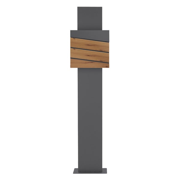 ECD Germany Standbriefkasten mit Zeitungsfach, Briefkasten Standfuß freistehend, Briefkastenständer Anthrazit 170 cm aus Edelstahl pulverbeschichtet, Postkasten Anthrazit-Holzoptik aus Stahl