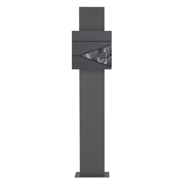 ECD Germany Standbriefkasten mit Zeitungsfach, Briefkasten Standfuß freistehend, Briefkastenständer Anthrazit 170 cm aus Edelstahl pulverbeschichtet, Postkasten Anthrazit-Schwarz Marmoroptik Stahl
