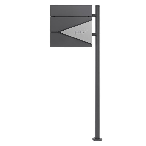 ECD Germany Standbriefkasten mit Zeitungsfach, Design Briefkasten mit Pfosten, Briefkastenanlage, Briefkastenständer Anthrazit 120 cm Edelstahl, Postkasten Anthrazit-Silber Edelstahl pulverbechichtet