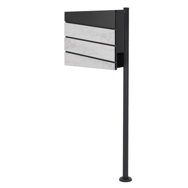 ECD Germany Standbriefkasten mit Zeitungsfach, Design Briefkasten mit Pfosten, Briefkastenanlage, Briefkastenständer Anthrazit Edelstahl, Postkasten Anthrazit Weiß-Marmoroptik Stahl pulverbechichtet
