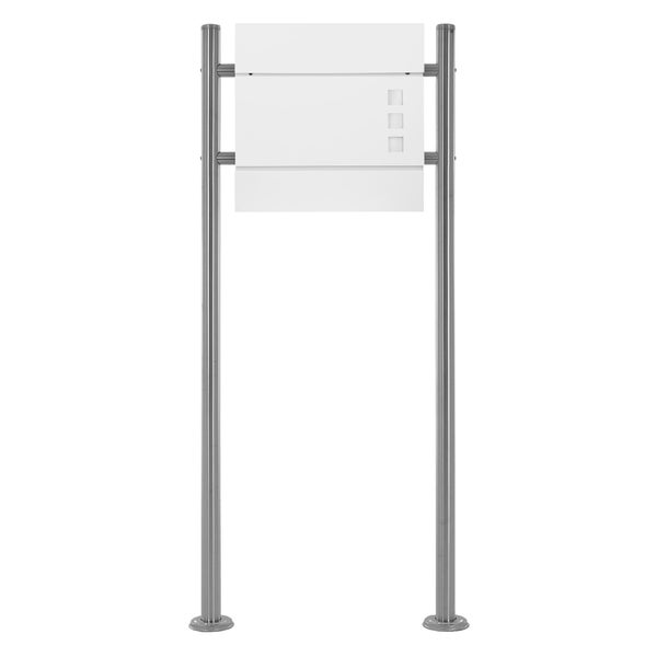 ECD Germany Standbriefkasten mit Zeitungsfach, Design Briefkasten mit Pfosten, Briefkastenanlage, Briefkastenständer Silber 120 cm, Postkasten Weiß 37x10,5x36,5 cm, Edelstahl / Stahl pulverbeschichtet