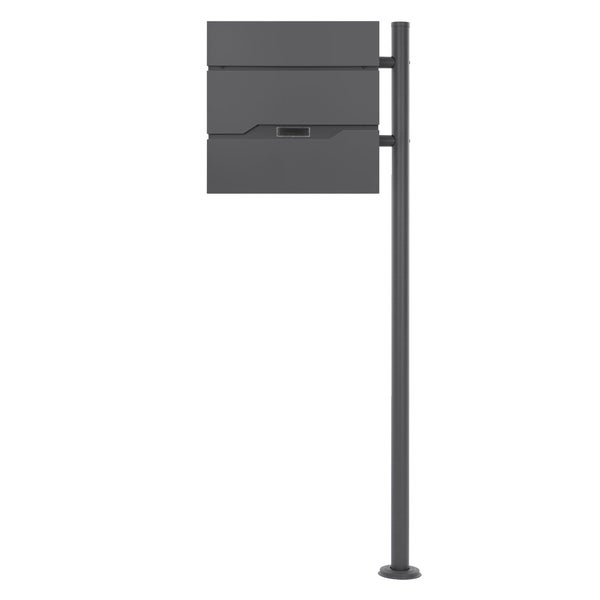 ECD Germany Standbriefkasten mit Zeitungsfach, Design Briefkasten mit Pfosten Standfuß, Briefkastenanlage, Briefkastenständer Anthrazit Edelstahl, Postkasten Anthrazit Edelstahl pulverbeschichtet
