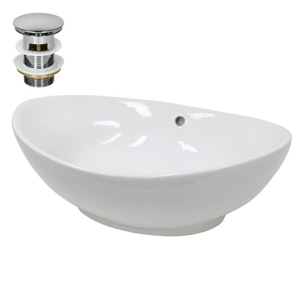 ECD Germany Waschbecken Waschtisch 590x390x200 mm Keramik Oval Weiß inkl. Ablaufgarnitur für Waschbecken mit Überlauf Aufsatzbecken Aufsatzwaschbecken Aufsatzwaschtisch Waschschale Spülbecken Becken