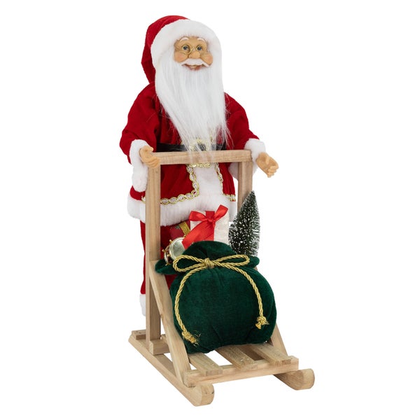 ECD Germany Weihnachtsmann-Figur stehend auf Schlitten, 30x20x50 cm, Polyresin & Holz, Christbaumschmuck Weihnachtsdeko Innen Weihnachtsdekoration Winterdekoration Deko Santa Claus Dekofigur Nikolaus