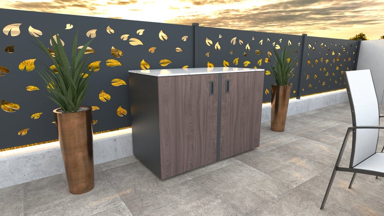 Eck oder freistehendes Element, Holzdekor - amerikanische Walnuss, 1268 x 634 mm, Höhe 935 mm - Pulverbeschichtete Edelstahl-Outdoorküche Element