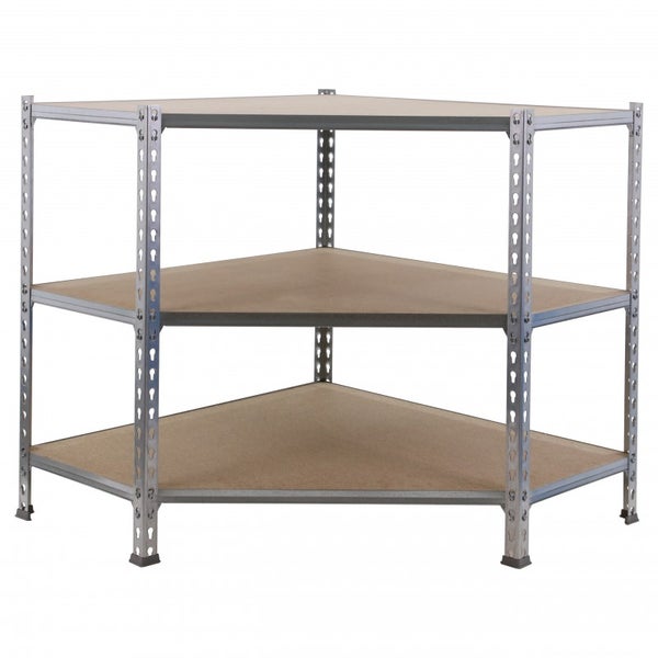 Eckregal SMALL MULI | HxBxT 90x90x30cm | 3 Fachböden | Fachlast 200kg | Verzinkt | Lagerregal Kellerregal Werkstattregal Metallregal Fachbodenregal Steckregal