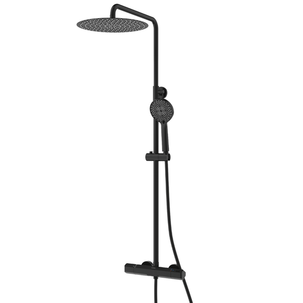 EcoRain 30% Wassersparender Regendusch-Duschset Tyler 30 CM Rund mit Thermostatarmatur - Handbrause 12 CM - Hoher Druck - Universell - Anti-Kalk Duschkopf - Schwarz