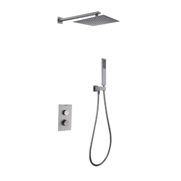 - Im Lieferumfang enthaltenThermostat, Brauseschlauch, Handbrause, Kopfbrause, Brausearm, Montage und Befestigungsmaterial, Benutzerhandbuch