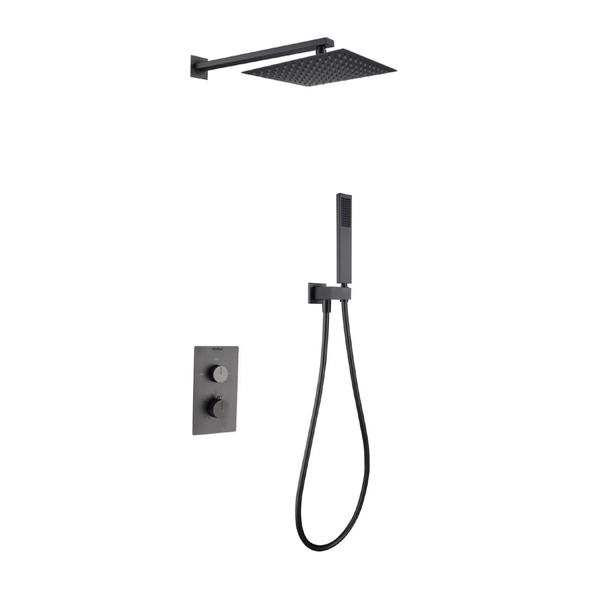 EcoRain 30% Wassersparendes Unterputz-Regenduschset Mia mit Thermostatarmatur - 30 CM Quadrat - Hoher Wasserdruck - Universeller Anschluss - Anti-Kalk Duschkopf - Schwarz