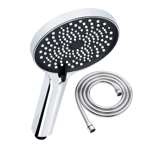 EcoRain 50% Wassersparender Duschkopf Charly 13 CM mit Duschschlauch und Wasserfilter - 3 Strahlarten - Universeller Anschluss - Anti-Kalk Duschkopf - Chrom