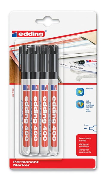 edding 400 Permanentmarker, 1mm, 4er Set schwarz