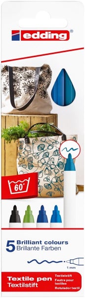 edding 4600 Textilstifte, 1mm, 5er Set kalte Farben