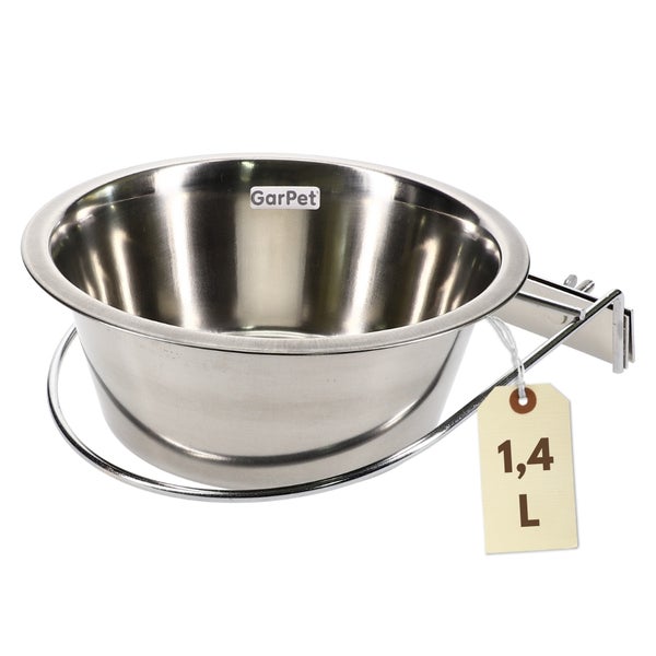 Edelstahlnapf zum Aufhängen Trinknapf Hund Futterschale Vogel Zubehör Napf für Gitterbox Nager Edelstahlnapf mit Befestigung Vogelnapf 1,40 L