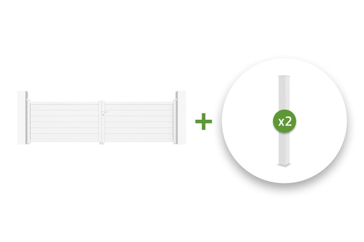 Die Pfosten sind in unseren Kits nicht enthalten, da sie für die Installation Ihres Flügeltors nicht unbedingt erforderlich sind, falls Ihr Außenbereich bereits Pfeiler/Pfosten hat.