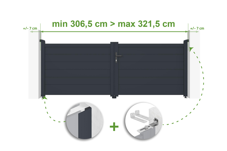 EIGER H.115cm graues verstellbares Aluminium-Flügeltor, 3m Breite