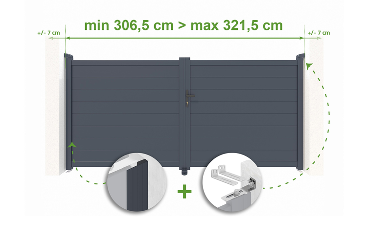 EIGER H.140cm graues verstellbares Aluminium-Flügeltor, 3m Breite
