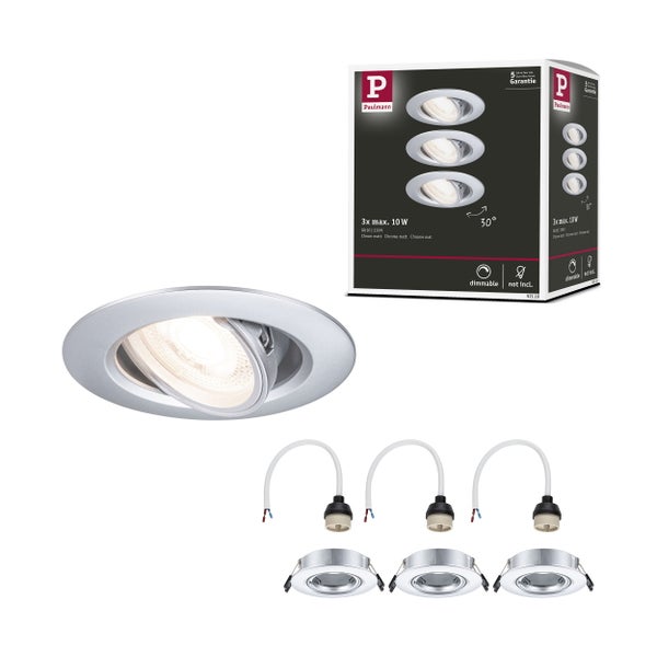 Einbauleuchte 3er-Set schwenkbar rund 90mm 30° GU10 max. 3x10W 230V dimmbar Chrom matt