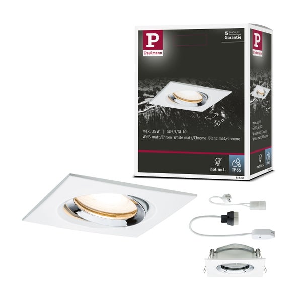 Einbauleuchte Nova Plus schwenkbar IP65 eckig 93x93 mm 30° GU5,3 / GU10 max. 35W 230/12V dimmbar Weiß matt, Chrom