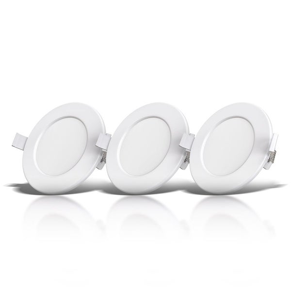 - Hochwertiges 3er Set langlebiger 6 Watt LED Einbaustrahler Weiß in ultraflacher Bauweise (30mm). Geringer Verbrauch bei wohlig warmen Licht durch eine Farbtemperatur von 3.000 Kelvin. Geeignet für Badezimmer durch Spritzwasserschutz IP44