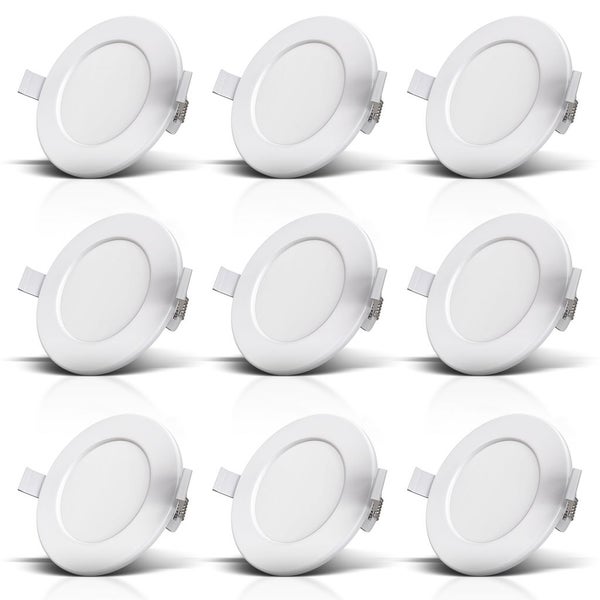 - Hochwertiges 9er Set langlebiger 6 Watt LED Einbaustrahler Weiß in ultra-flacher Bauweise (30mm). Geringer Verbrauch bei wohlig warmen Licht durch eine Farbtemperatur von 3.000 Kelvin. Geeignet für Badezimmer durch Spritzwasserschutz IP44