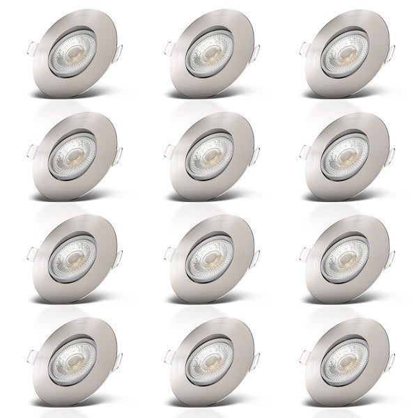 Einbaustrahler 68mm 12er Set - 230V, 4,9W, 480lm, LED, warmweiß, matt-nickel