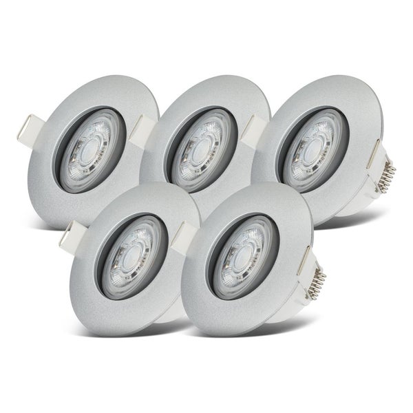 Einbaustrahler 68mm 5er Set - 230V, 4,9W, 480lm, LED, dimmbar, IP65, warmweiß, silberfarbig