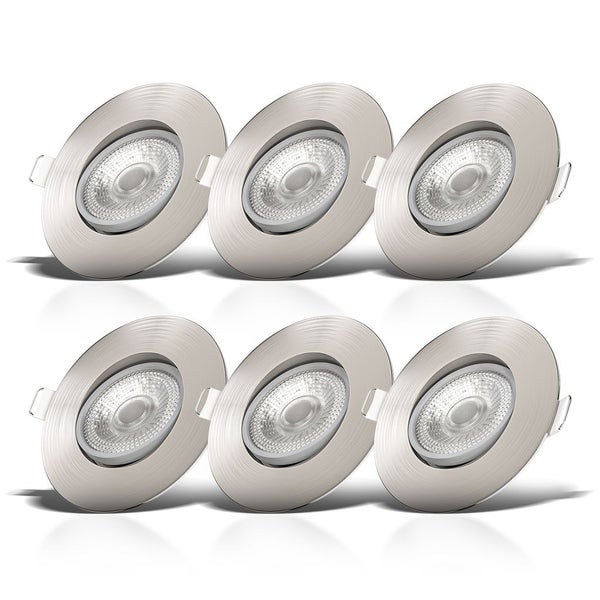 Einbaustrahler 68mm 6er Set - 230V, 4,9W, 480lm, LED, warmweiß, matt-nickel
