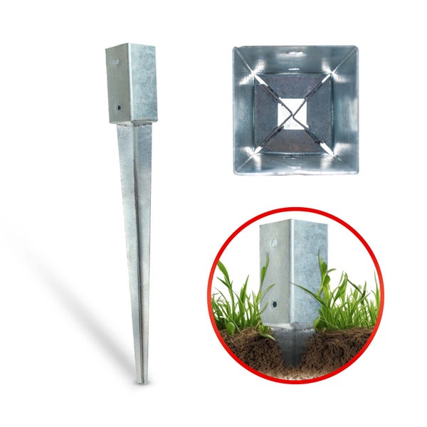 Das Beste an dieser Bodenhülse ist ihre einfache Handhabung: Mit einem Hammer oder speziellen Einschlagwerkzeugen lässt sie sich schnell und ohne Betonfundamente im Erdreich verankern. Ihre solide Bauweise garantiert, dass der Pfosten sicher und fest sitzt – für langfristige Standfestigkeit.