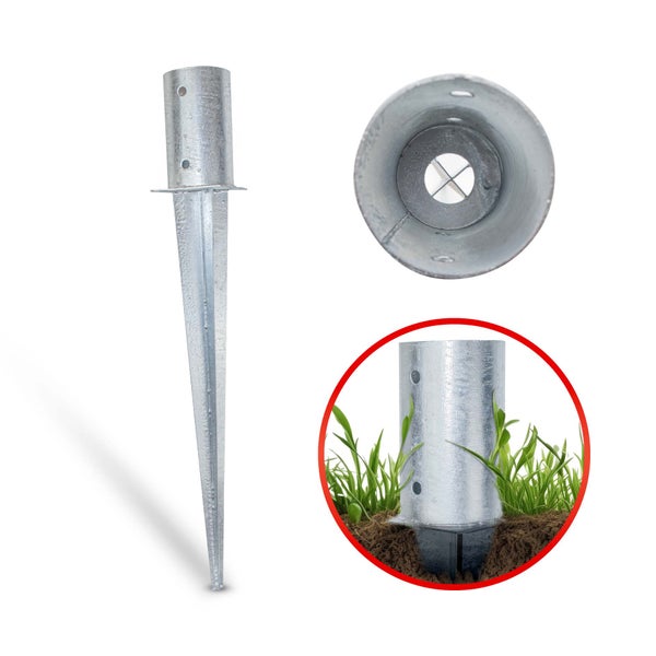 - Vielseitige Einsatzmöglichkeiten: Verankert und schützt Rundpfähle sicher im Erdreich. Dank der 60 cm langen Spitze mit X-Design erhältst du einen stabilen Halt.